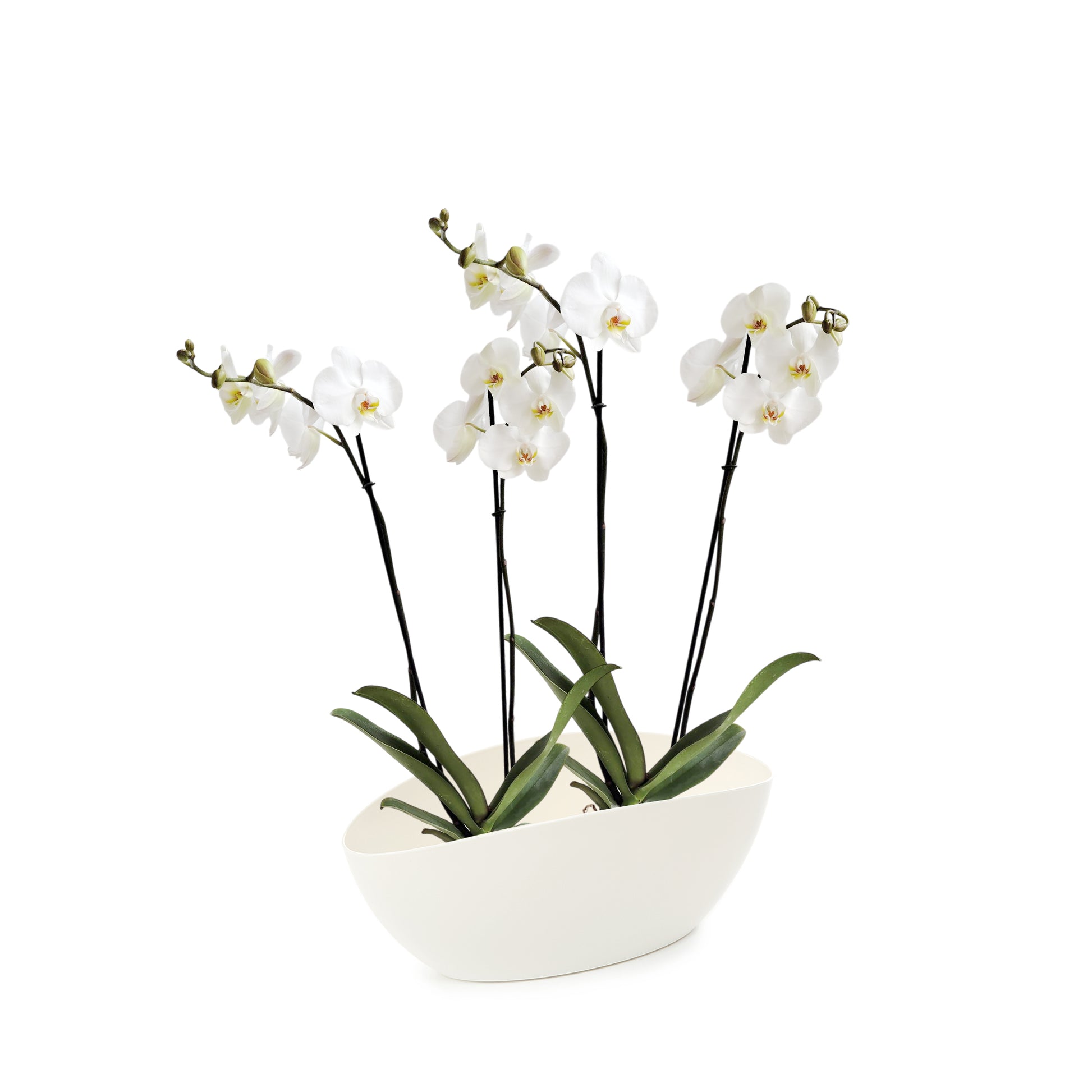 ORQUÍDEA CUATRO TALLOS BLANCA - EN MATERA PLÁSTICA LUNA MPR
